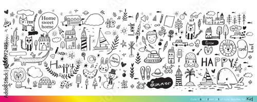 Collection of hand drawn cute doodles,Doodle children drawing,Sketch set of drawings in child style,Funny Doodle Hand Drawn,Page for coloring, cute animal hand drawn, cute Doodle