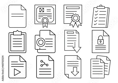 Collection of hand drawn document icons on white background