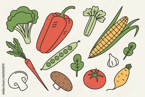 Collection of hand drawn vegetables in a simple flat style