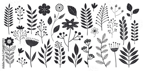 Collection of Hand-Drawn Floral and Botanical Elements Silhouettes and Line Art for Design Projects