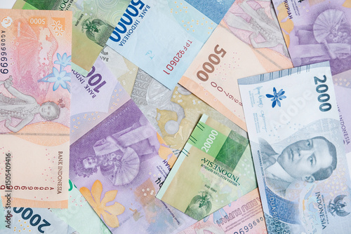 Collection of Indonesian rupiah banknotes for background
