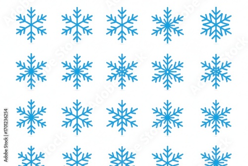 Collection of intricate blue snowflake designs isolated on white crisp vector style assorted sizes symmetrical winter ice crystals perfect seasonal clipart and decoration