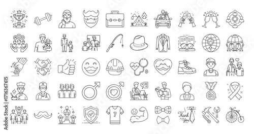 Collection of Line Art Icons Representing Various Aspects of Fatherhood and Masculinity