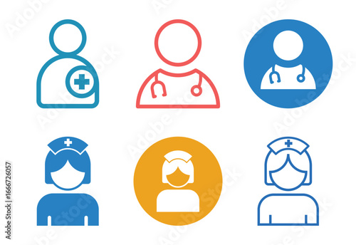 Collection of medical professional icons representing doctors and nurses