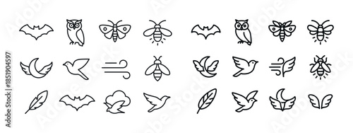 Collection of minimalist animal and nature icons in black outlin