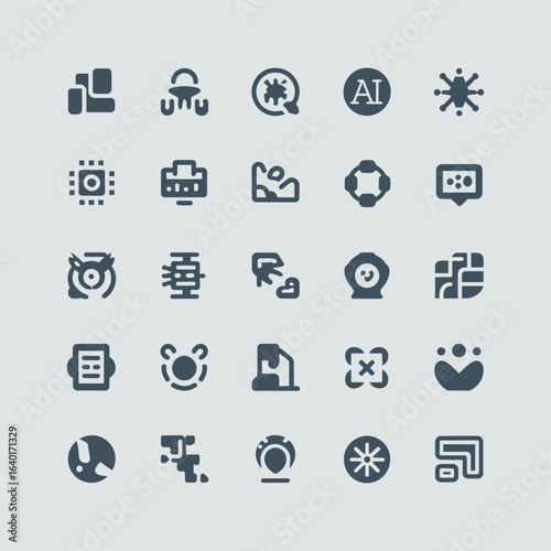 Collection of modern flat design icons for technology and business
