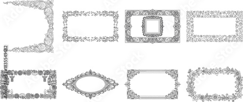 Collection of ornate decorative frames and borders isolated on transparent background