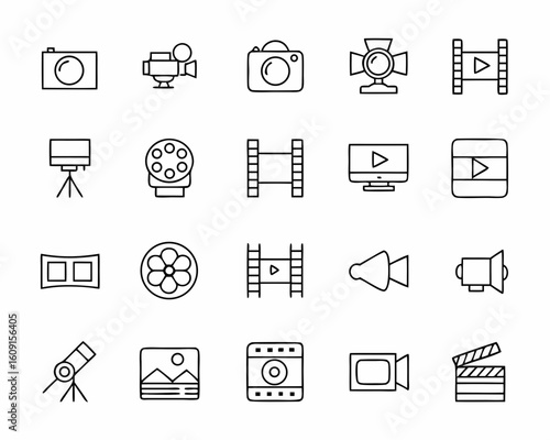 Collection of outline icons for film and photography production