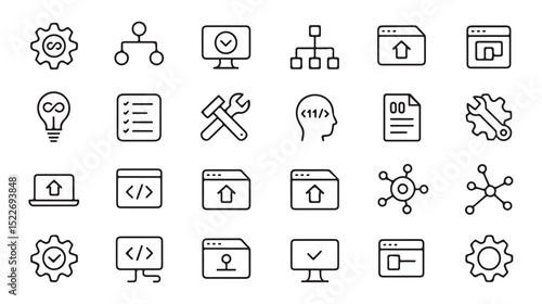 Collection of software development and web design icons with outline style