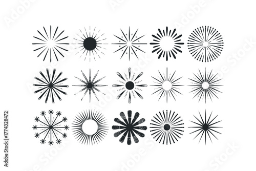 Collection of Stylized Sunburst and Starburst Graphics