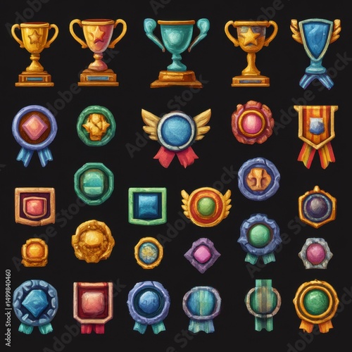 Collection of trophies and badges isolated on transparent background
