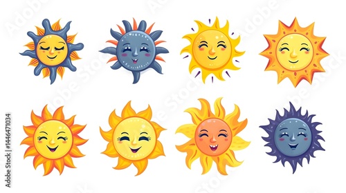 Collection of Unique Hand-Drawn Cartoon Sun Illustrations for Creative Projects