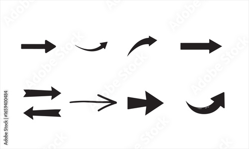 Collection of various black directional arrows on white background