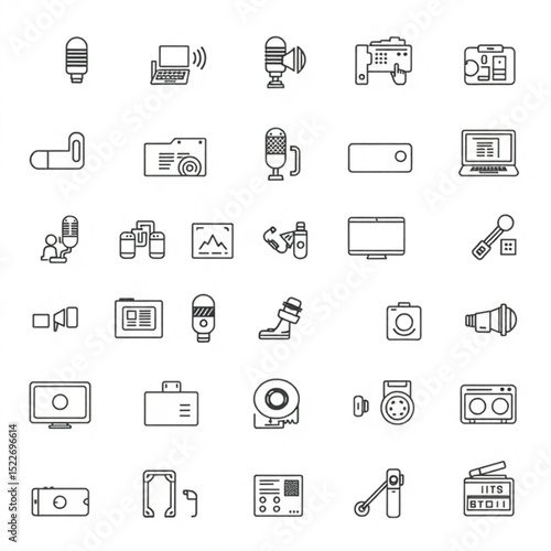 Collection of various electronic devices and equipment icons in a line art style display format created with generated ai