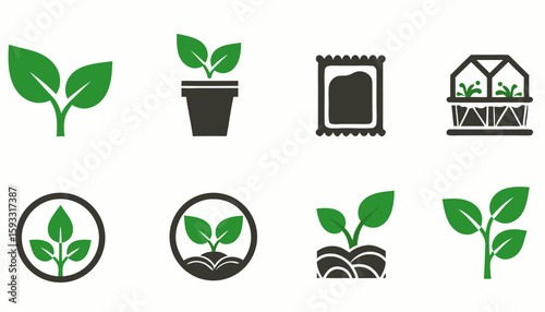Collection of various green plant icons, illustrating growth and gardening.