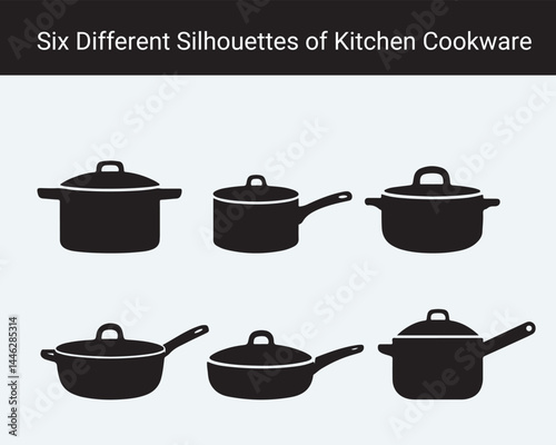 Collection Set of Kitchen Cookware Silhouettes Vector
