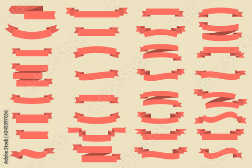 Collection Vector Ribbon Banners in flat design. Ribbon Banners in coral color.