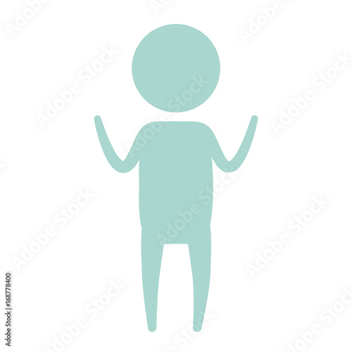 color blue pictogram silhouette boy standing with hands up