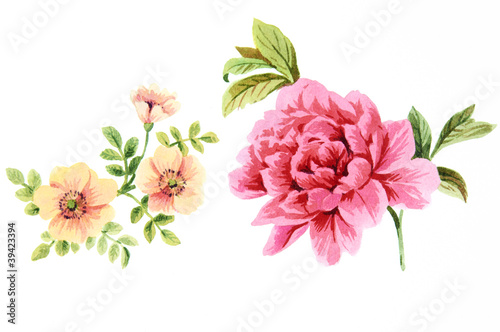 Color illustration of flowers in watercolor paintings