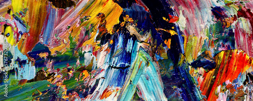 Color texture. Hand drawn oil painting on canvas. Abstract art background. Modern, contemporary art. Colorful canvas. Wall decor background