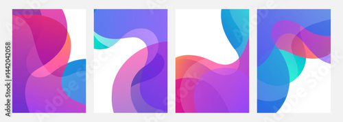 Color waves. Abstract backgrounds with curved wavy shapes and bright fluid colors. Vibrant colored gradients for creative graphic design. Vector illustration.
