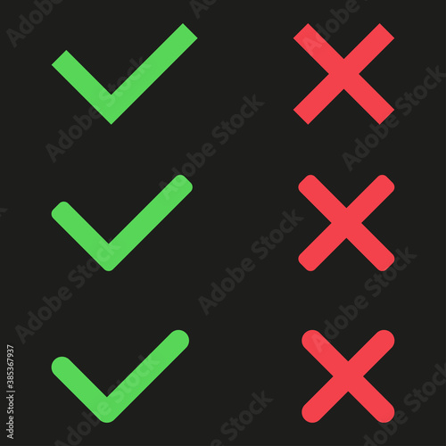Colored check mark on black. Infographic elements on isolated background. Set of check marks