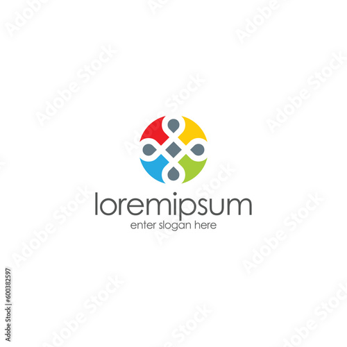 colored circle logo, four people icon. vector logo templates
