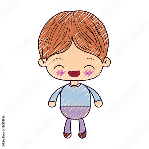 colored crayon silhouette of kawaii little boy with facial expression laughing vector illustration
