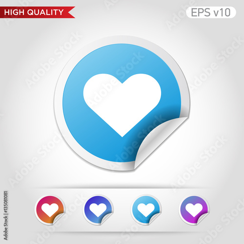 Colored icon or button of heart symbol with background