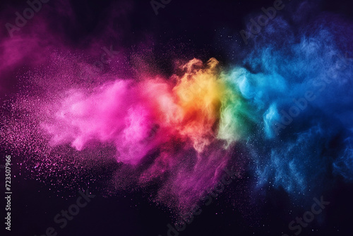 Colored powder explosion. Rainbow colors dust background. Multicolored powder splash background