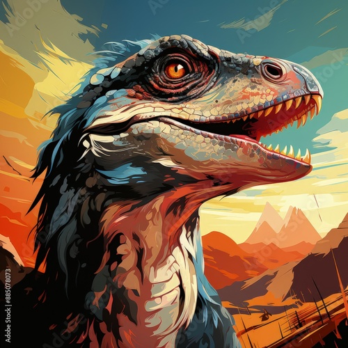 Colorful 2D Illustration of a Velociraptor in Vector Art