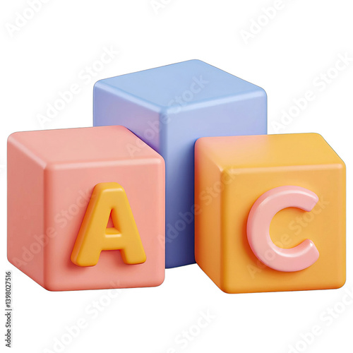 Colorful 3D illustration bet blocks in pink, yellow, and blue, perfect for educational play and early learning