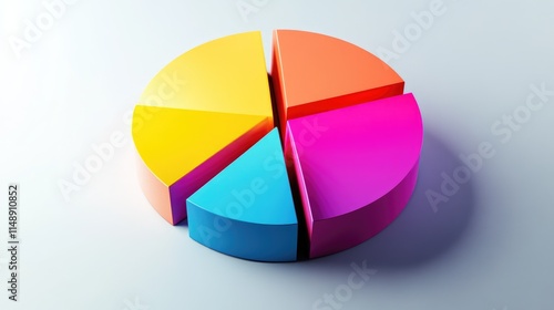 Colorful 3D pie chart with four distinct segments representing data visualization, analysis, and representation of statistical information on a clean background