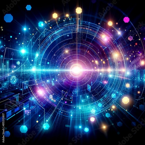 Colorful Abstract Background with Geometric Shapes and Bokeh