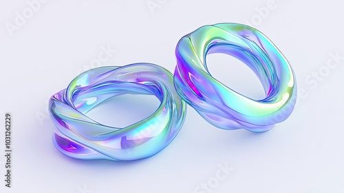 Colorful Abstract Iridescent Ring Shapes Displaying Intricate Designs Generative AI
