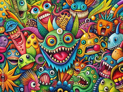 Colorful Abstract Monster Doodle Collage - Rule of Thirds Composition