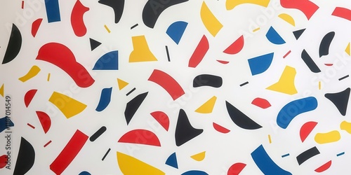 Colorful abstract shapes in a playful arrangement on a white background.