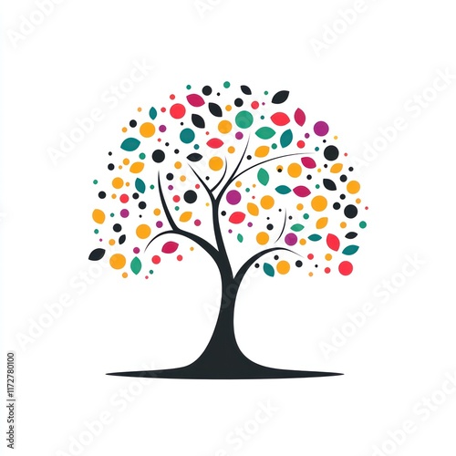 Colorful Abstract Tree Design with Dots and Leaves