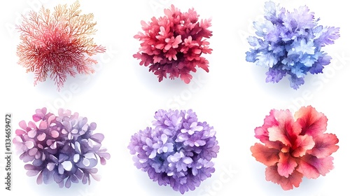 Colorful abstract watercolor depictions of various marine organisms