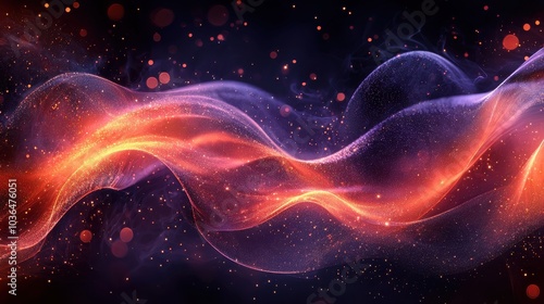 Colorful abstract wave design representing energy and movement in a dark space with glowing particles
