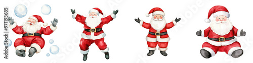 Colorful and festive Santa Claus illustrations, perfect for Christmas celebrations, cards, and holiday decorations.