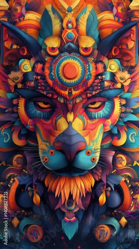 Colorful and Intricate Abstract Artistic Cat Face Design