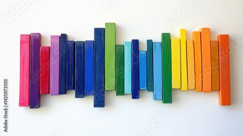 Colorful Arrangement of Piano Keys on White Surface
