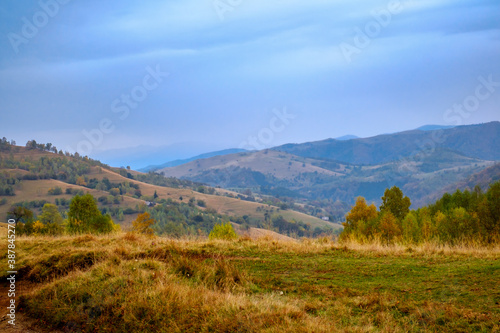 Colorful autumn landscape in the Romanian Carpathians, Fantanele village, Sibiu county, Cindrel mountains, 1100m, Romania