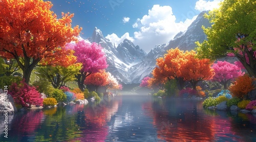 Colorful Autumn Landscape with Mountain Lake.
