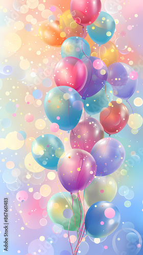 Colorful balloons flying on soft background with bokeh lights
