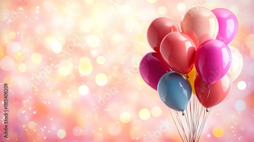 Colorful Balloons Pink background With Copy Space