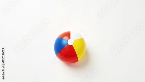 Colorful Beach Ball with Red, Yellow, Blue, and White Quadrants on Minimalist White Background