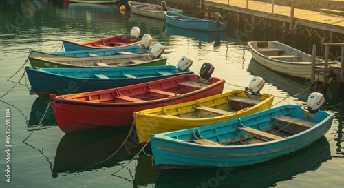Colorful boats docked in harbor
