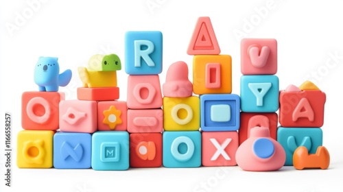 Colorful building blocks for children. These playful shapes encourage creativity and learning. Perfect for early education and imaginative play. Generative AI